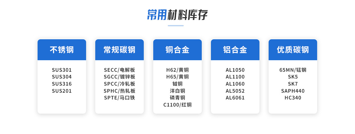 尚恩精密鈑金加工常用的材質有電解板,鍍鋅板,冷軋板,不銹鋼,鋁合金,黃銅,紅銅,洋白銅,馬口鐵等。訂單形式有手板打樣/批量生產,也可配合客戶做單工段來料加工,如激光切割下料,數控折彎,焊接組裝等。