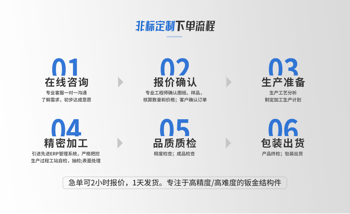 尚恩精密鈑金引進型的光纖激光切割機,數控折彎機,壓鉚機,旋鉚機,焊接機,定制超大工作臺面的油壓機等生產設備,切割精度可達±0.03mm,折彎精度可達±0.10mm,快可以1天交貨,正常發貨3-7天。