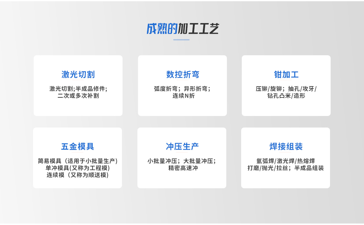 加工工藝鐳射切割 沖凸 二次修割 抽芽 折彎 鉚合